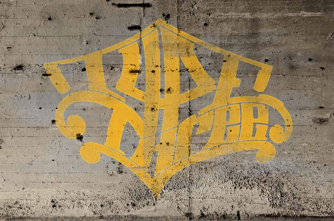 Experimental lettering project using the name of the course, "Type Three". Guideline: Try to show interconnectedness between letters by breaking the baselines.